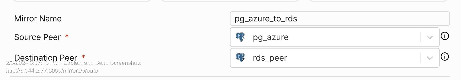To perform CDC from Postgres to Postgres, you first need to create a source and destination Peer.- Create a Source Peer for Postgres. Follow the instructions depending on your Postgres instance: